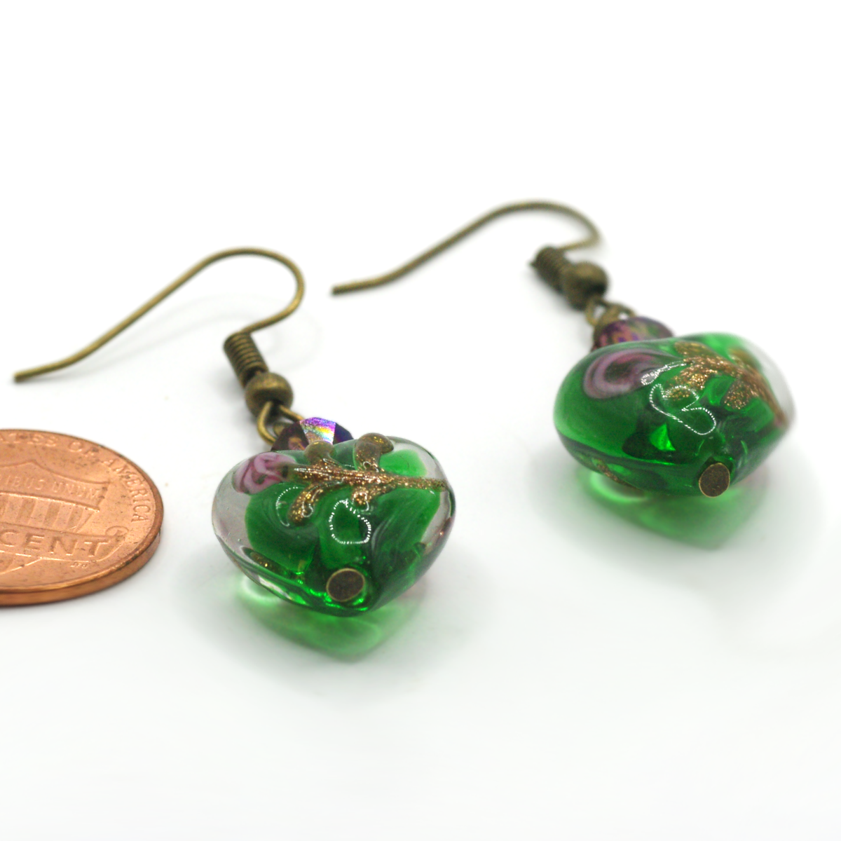 These little green heart earrings offer old-fashioned charm with a modern appeal.