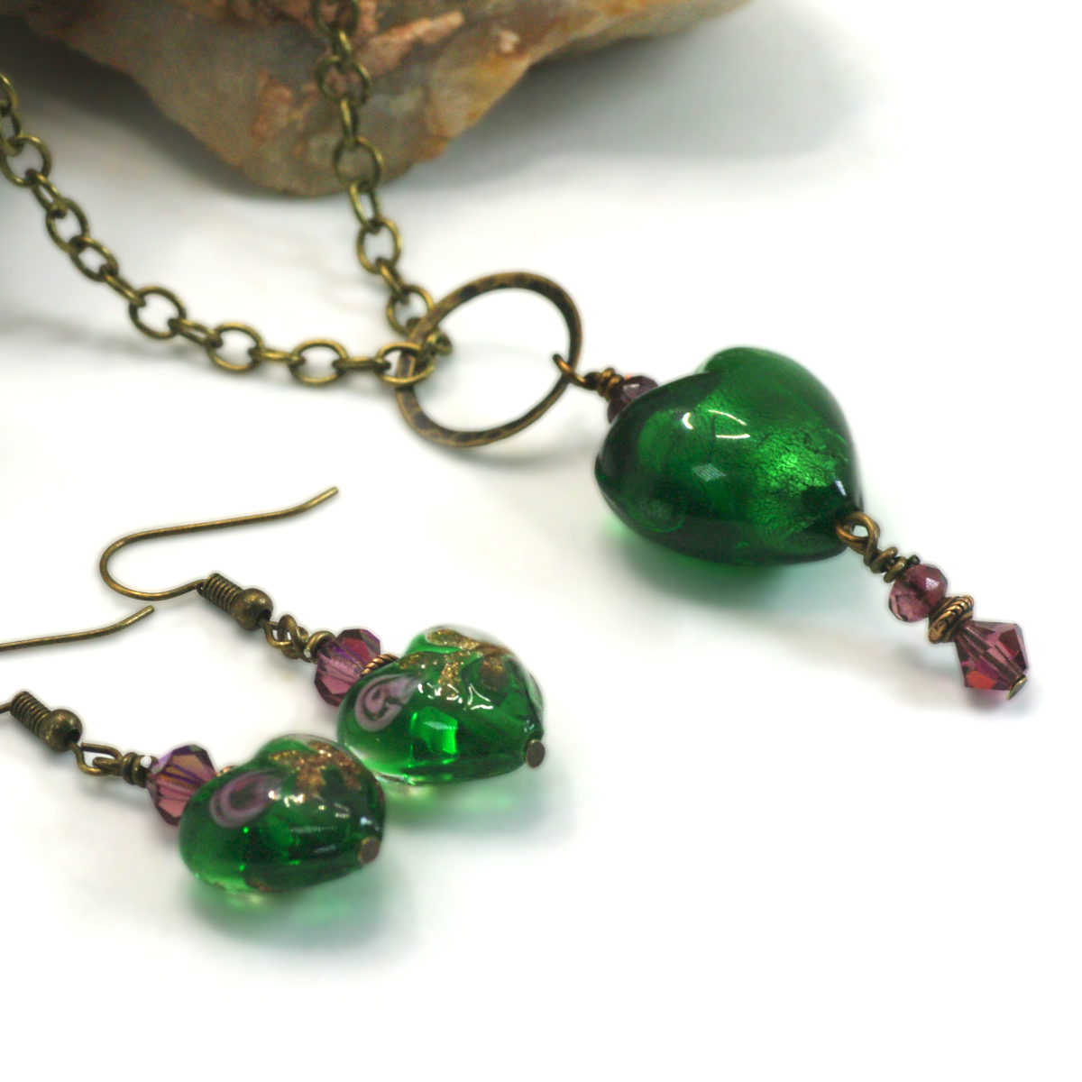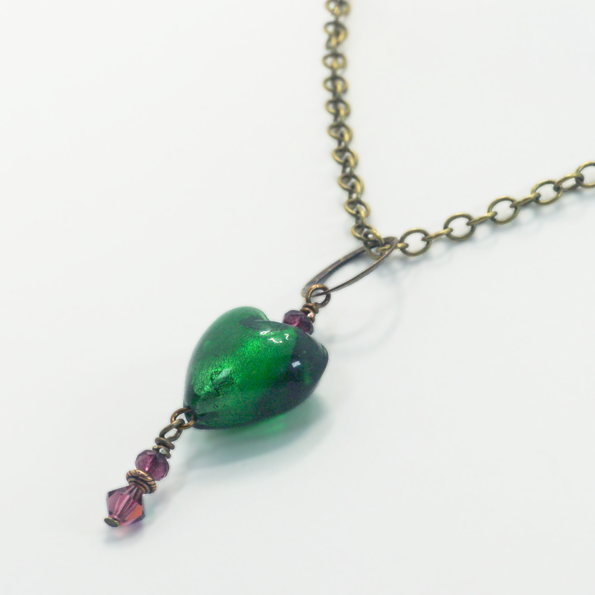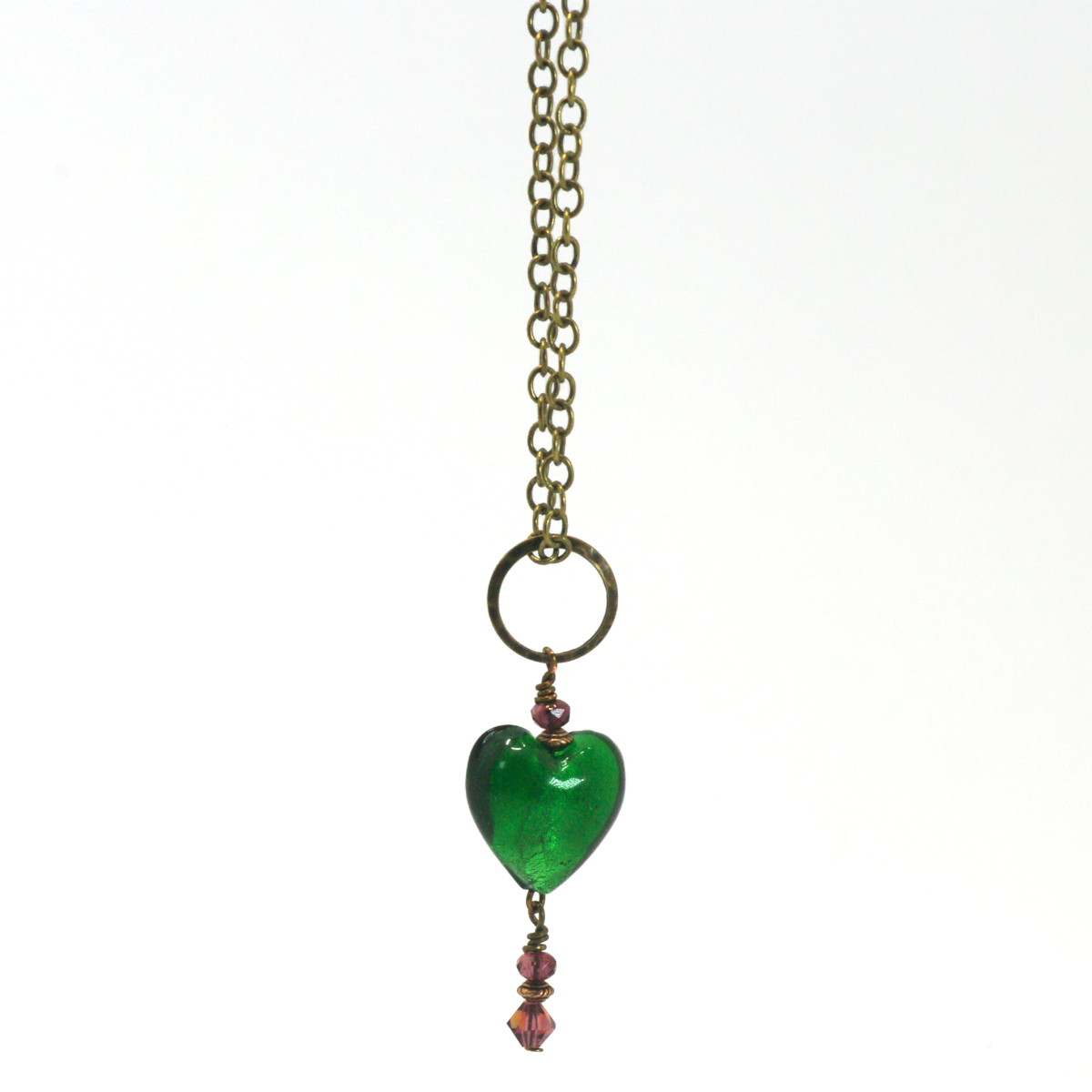 Why wear your heart on your sleeve? Wear this green glass heart on a chain, instead.