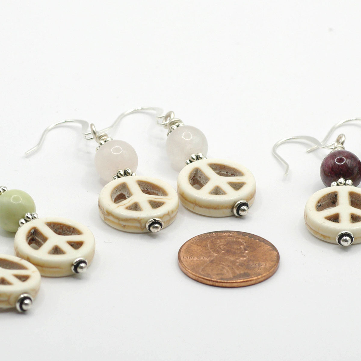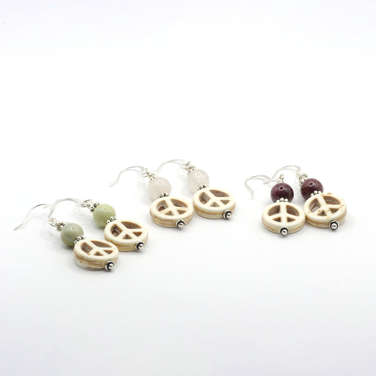 These earrings probably won’t change the world, but they can certainly brighten your day. Peace should be peaceful, so I’ve chosen a trio of gemstones in gentle hues: dusty pink rose quartz, pour-me-a-glass garnet, or pale green Australian jasper. As always, I’m happy to customize if a different gem would better align with your personal path.