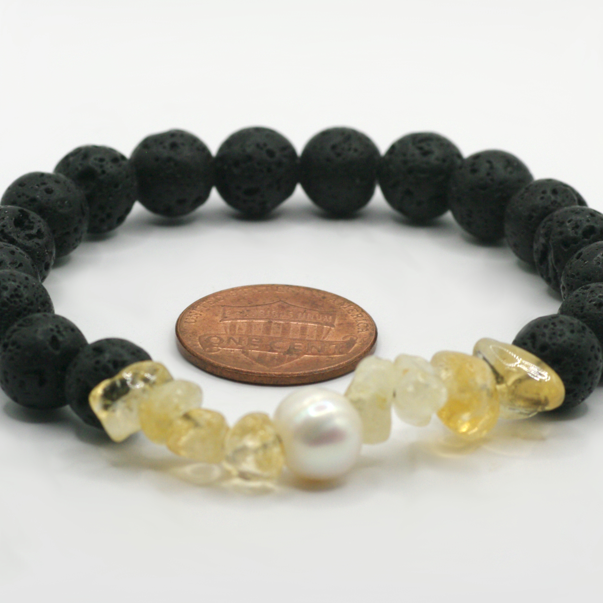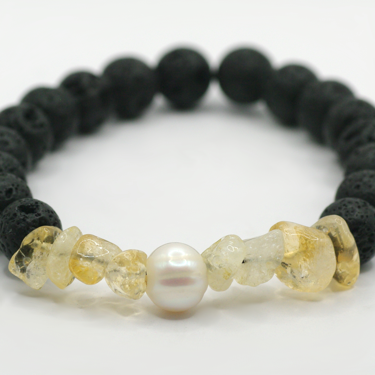 Pop a little sunshine on your wrist. Citrine, a yellow form of quartz, is said to bring positive energy and to symbolize happiness and joy. We need more of this! And if that’s not enough, add a drop of essential oil—something citrusy, maybe?—to one of the lava beads. Now you have your own, personal retreat, ready whenever you need it.