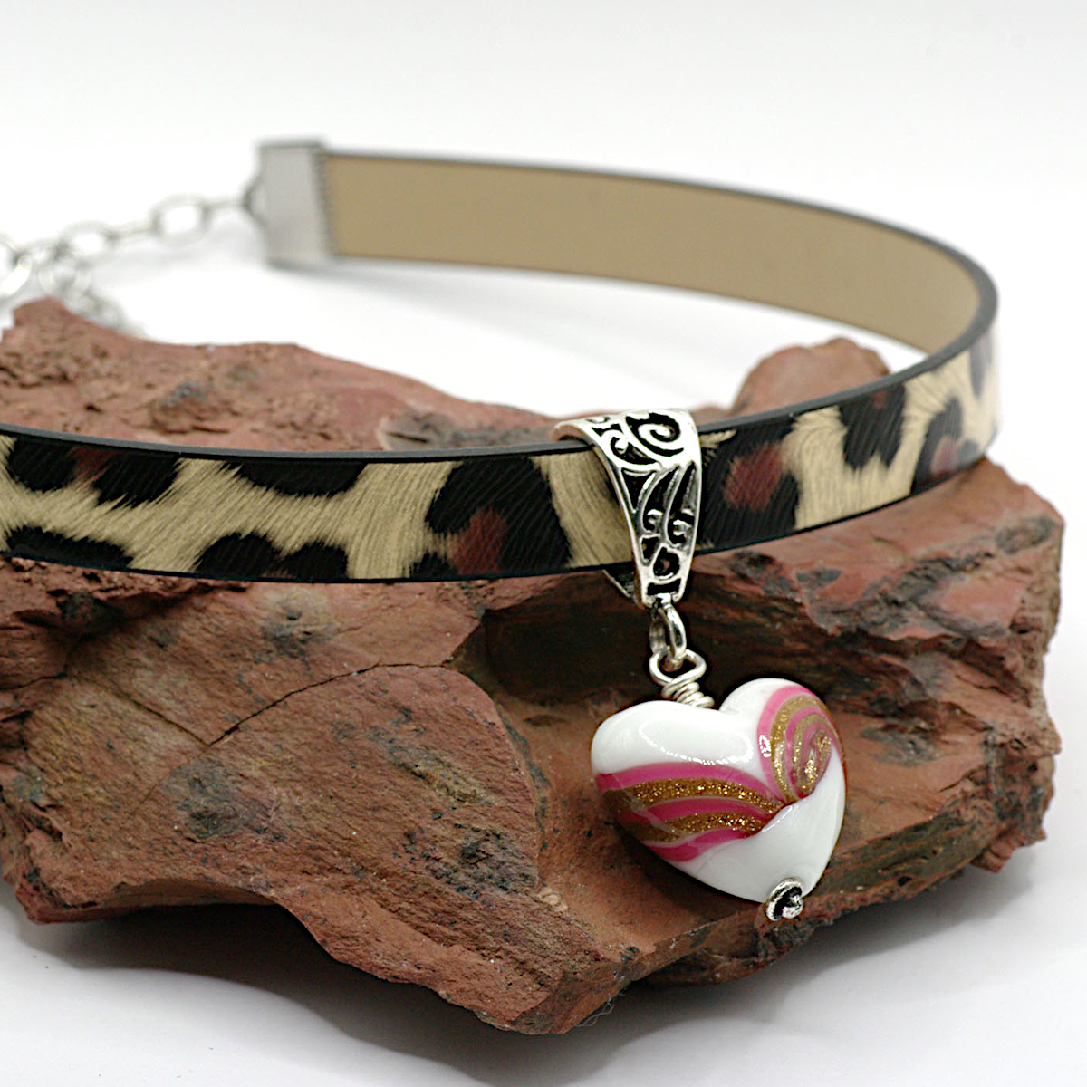 Leopard: fearless and daring. Glittery glass heart: fearless and daring.